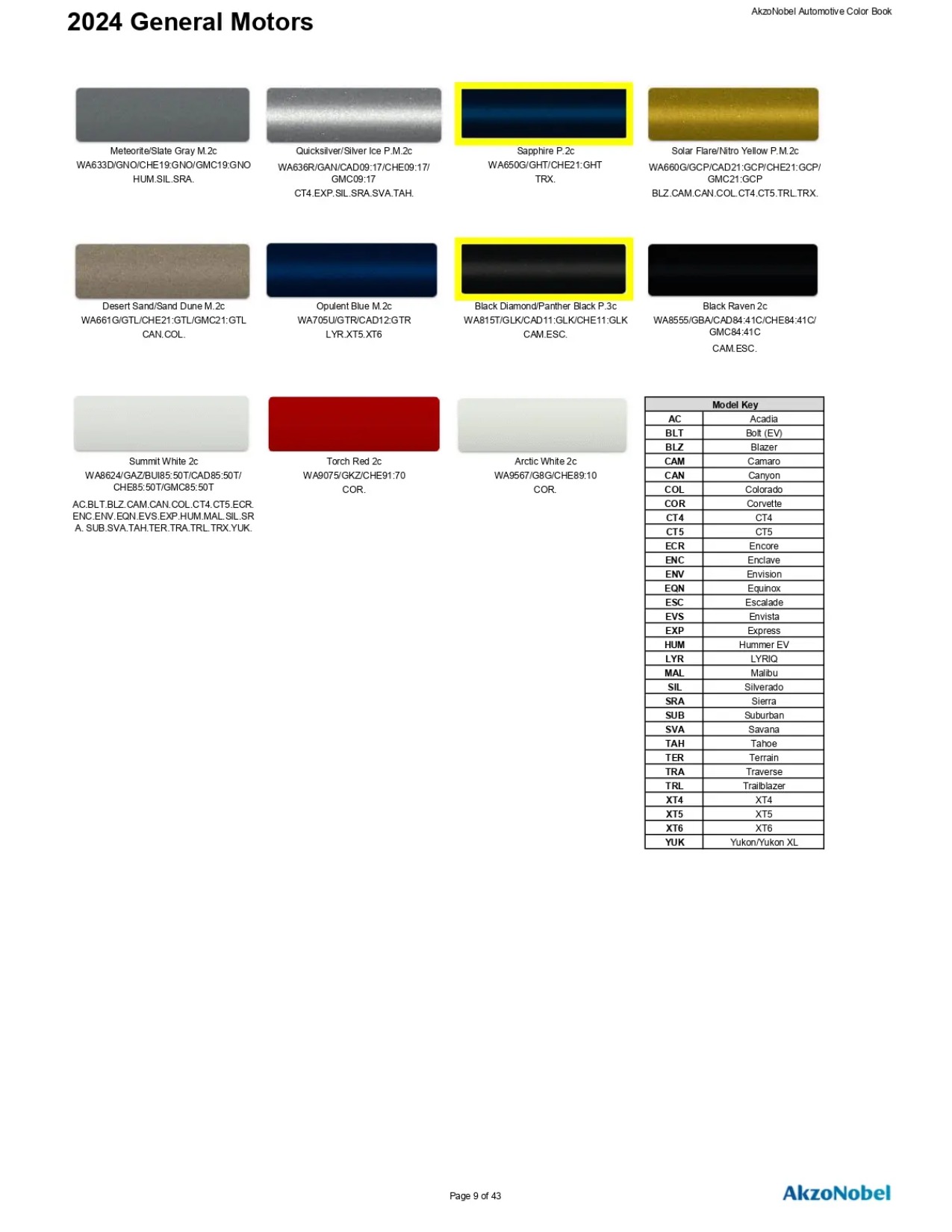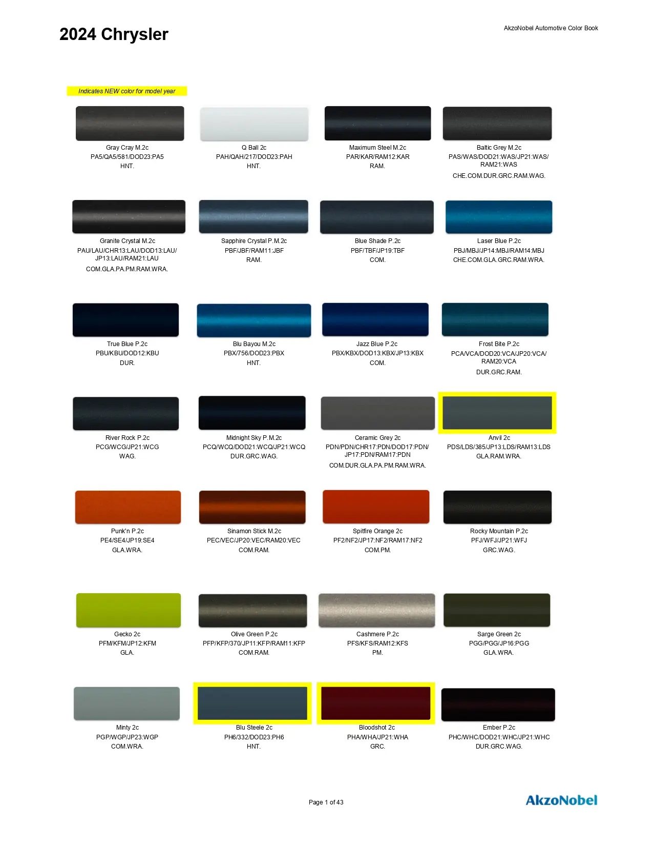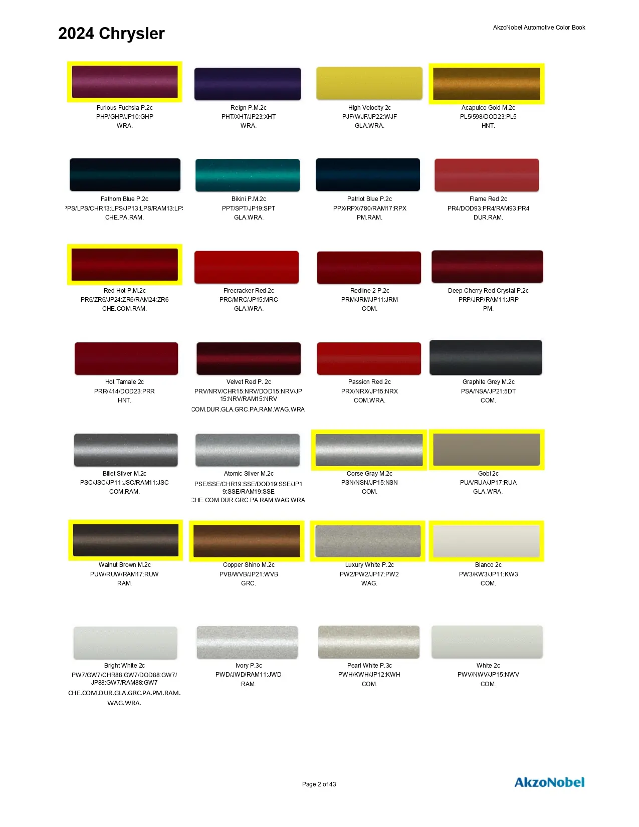 2024 _ Paint Codes & Color Chart Page