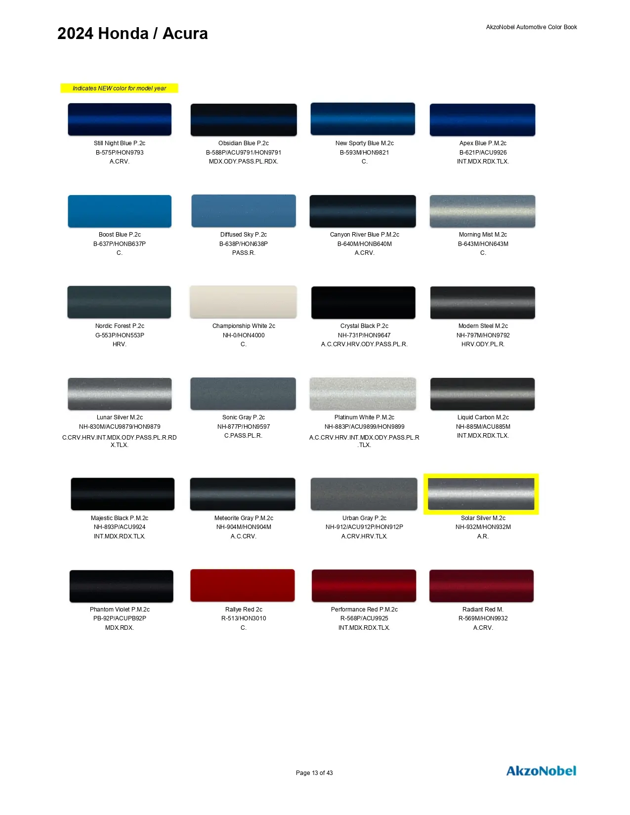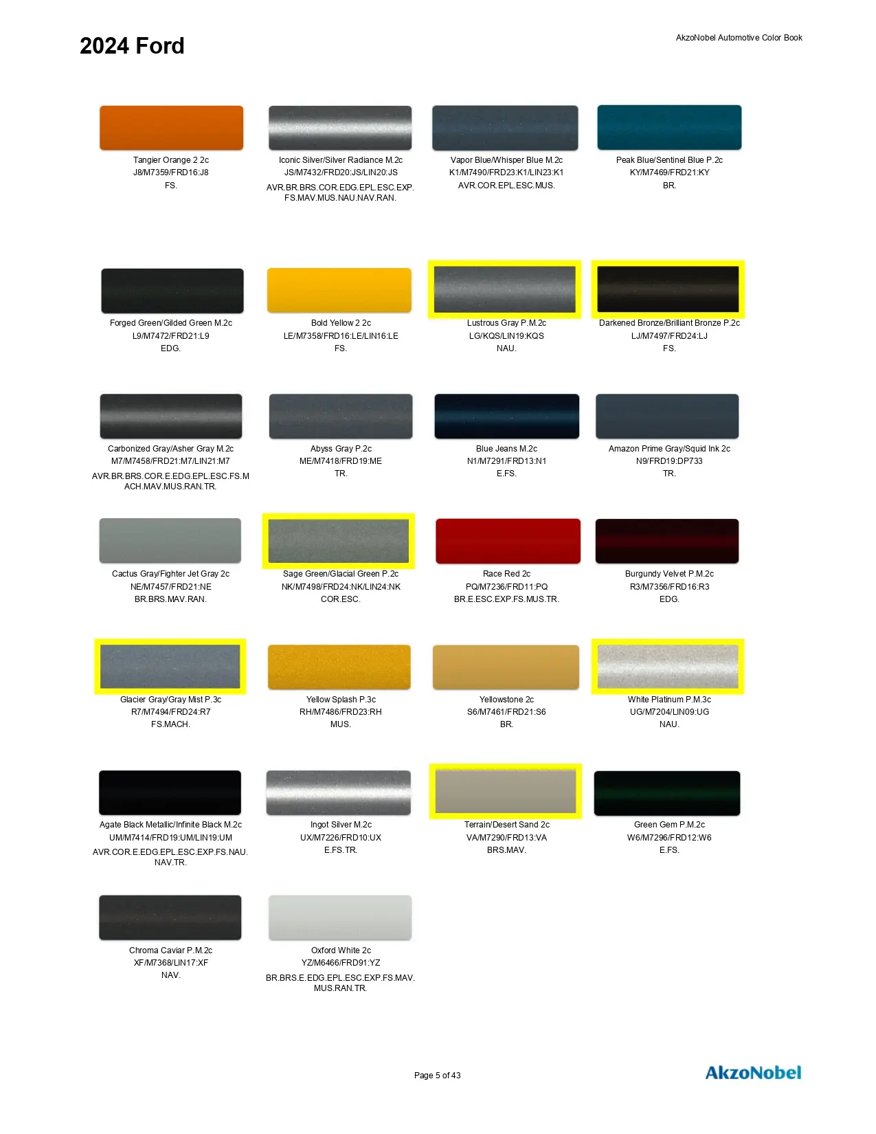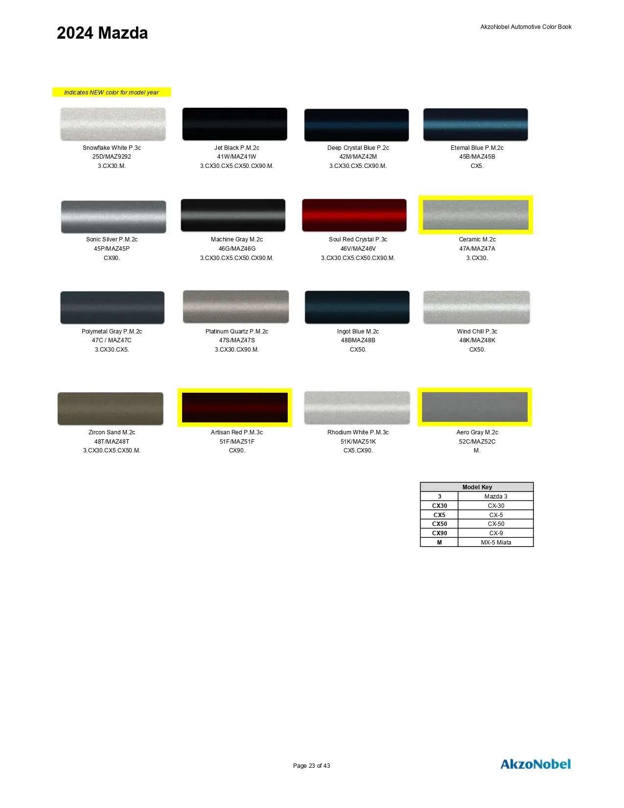 2024 Paint Codes and Color Charts