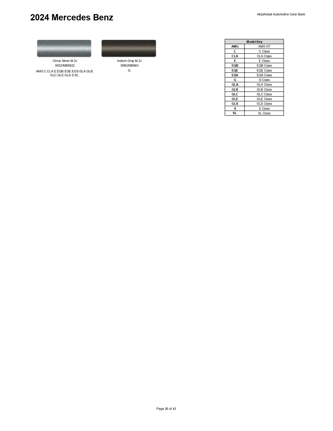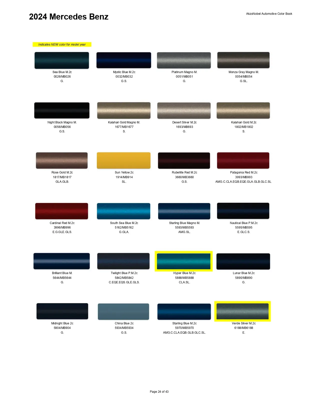 2024 Mercedes-Benz & Mini Paint Codes & Color Chart Page 1
