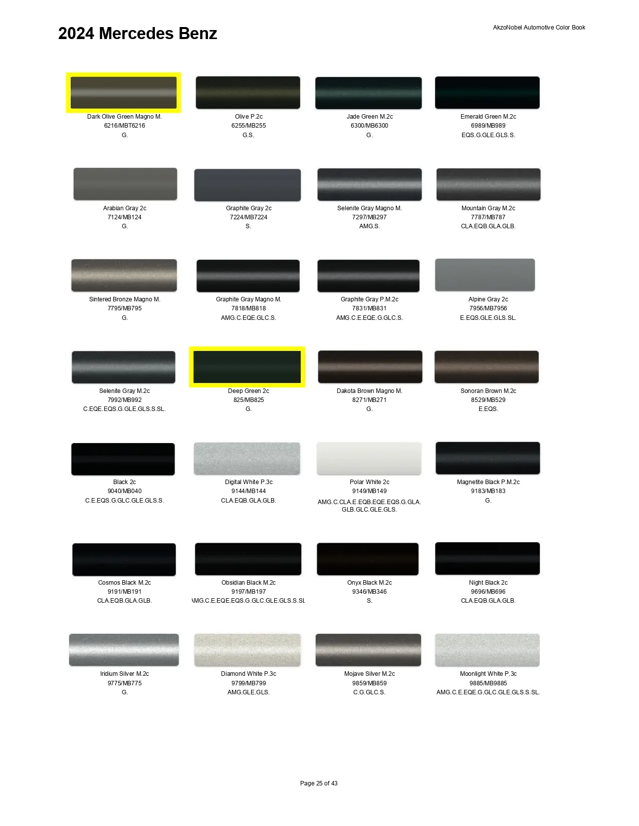 2024 Mercedes-Benz & Mini Paint Codes & Color Chart Page 3