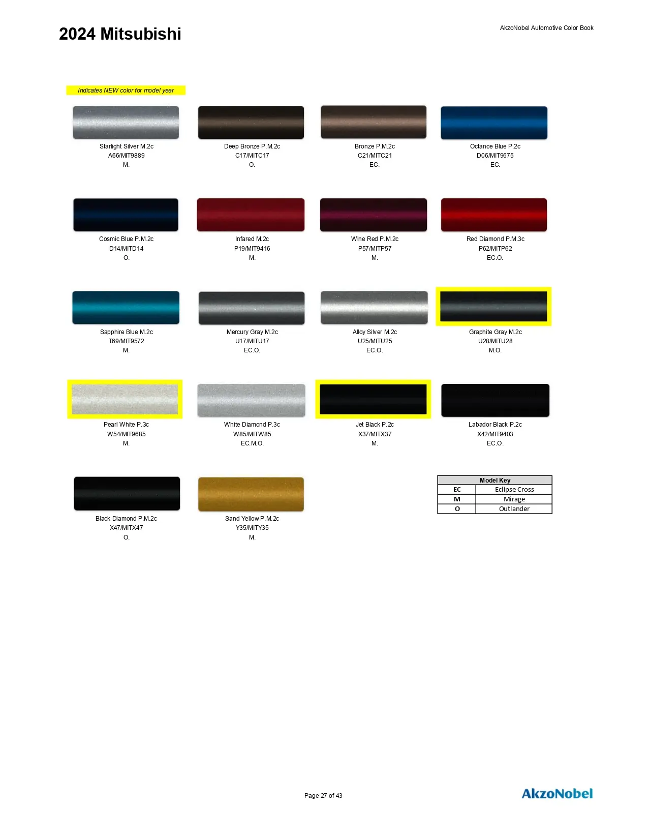 2024 Mitsubishi Paint Codes & Color Chart