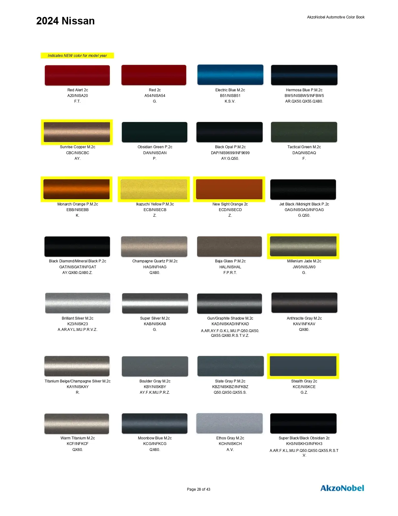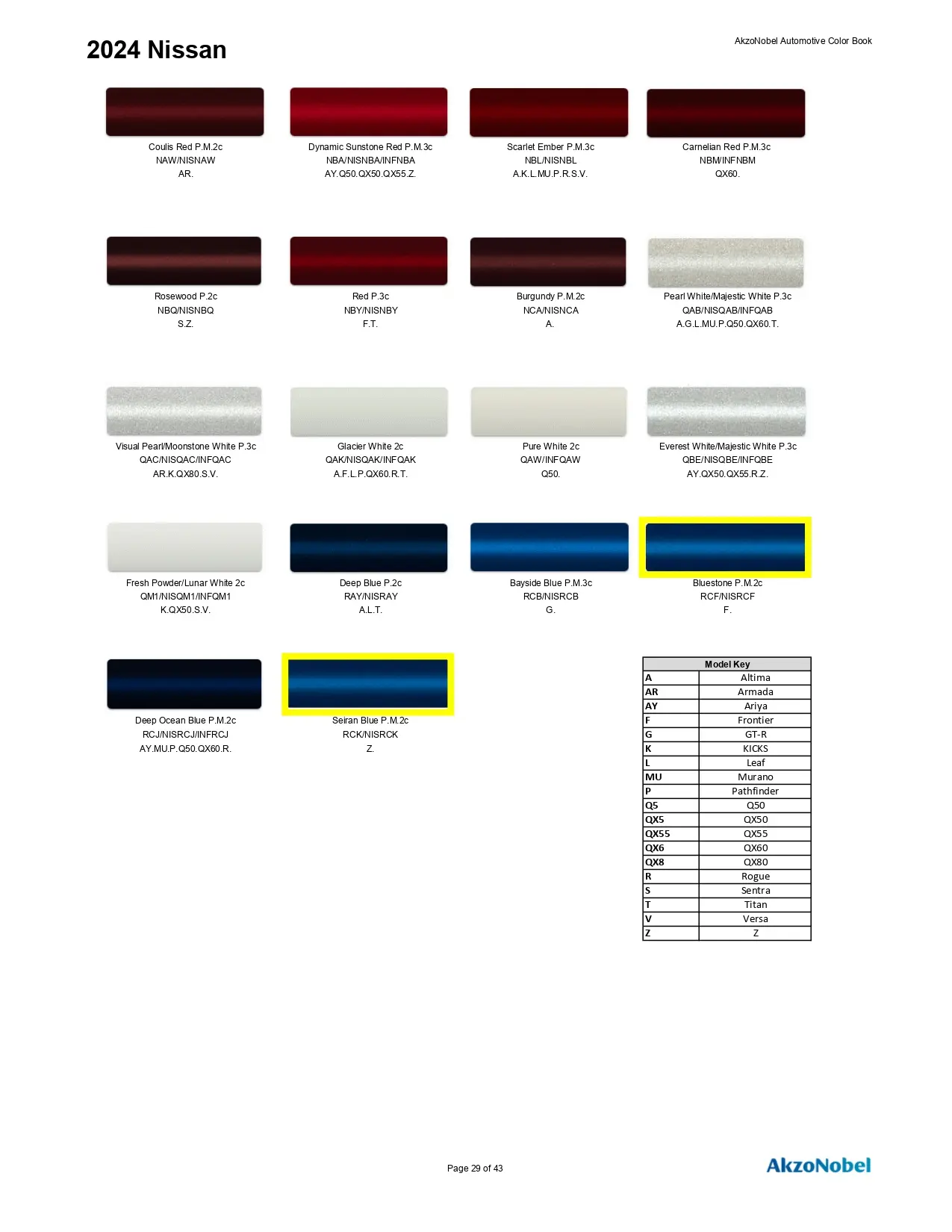 2024 Nissan & Infiniti Paint Codes & Color Chart Page 1