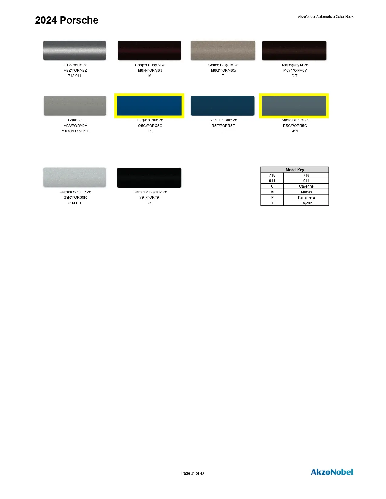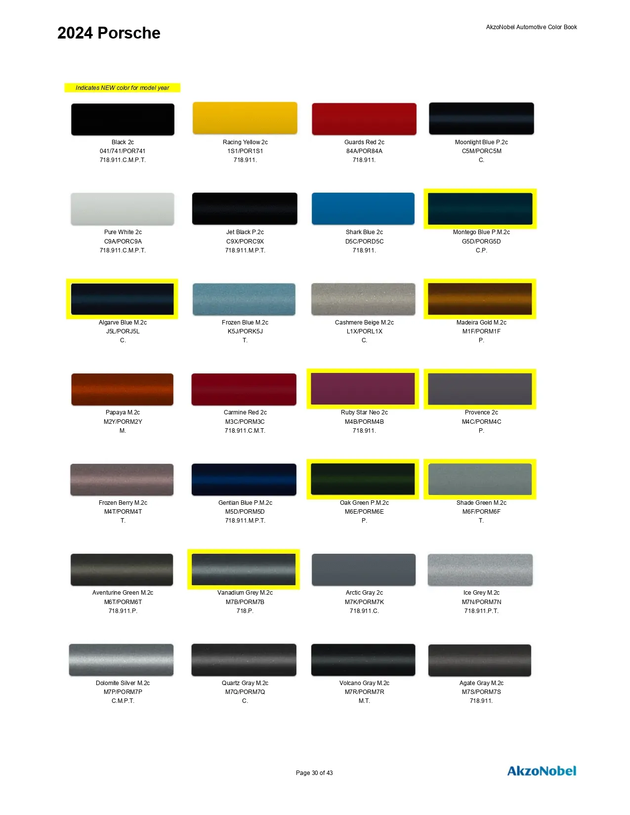 2024 Porsche Paint Codes & Color Chart Page 1