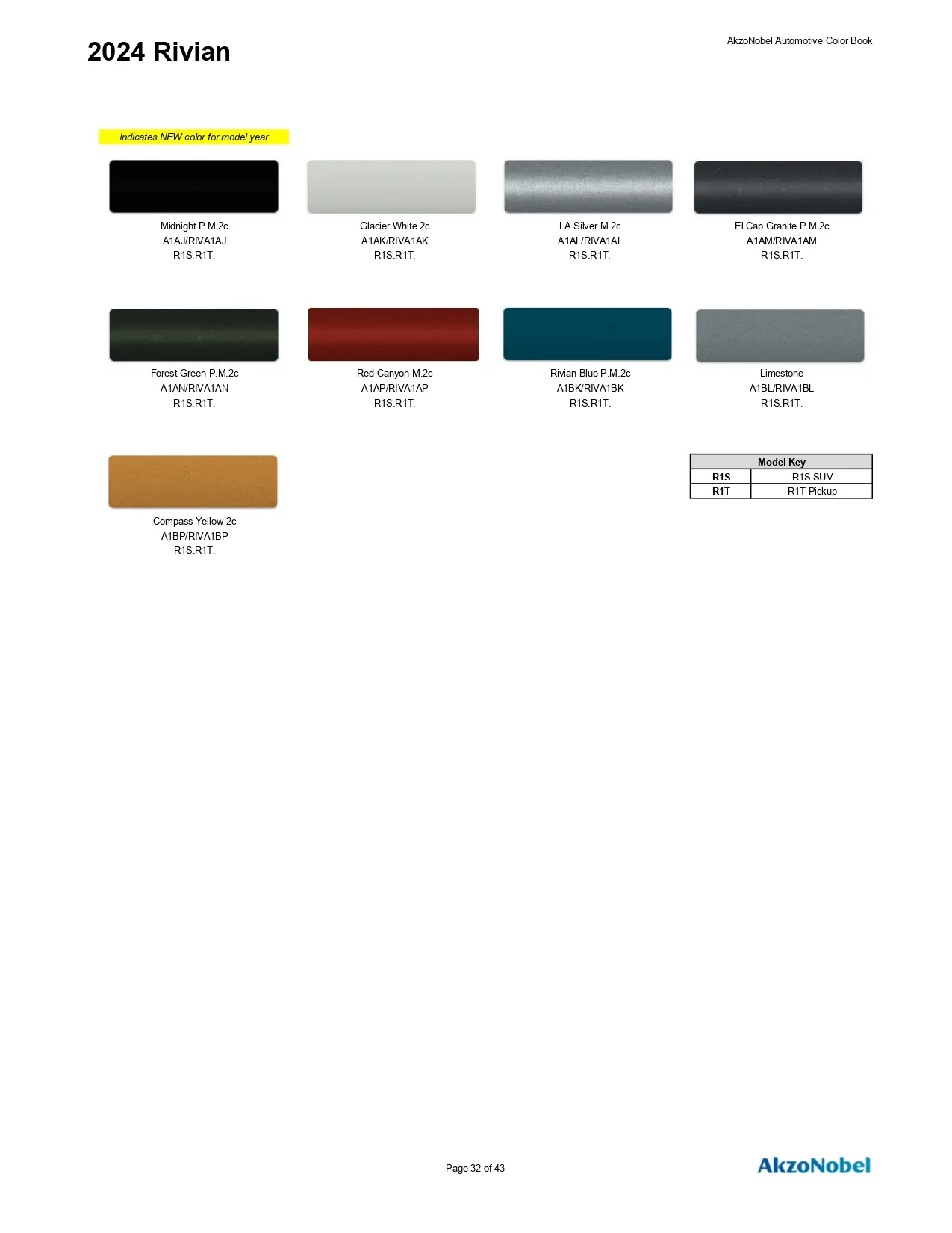 2024 Rivian Paint Codes & Color Chart