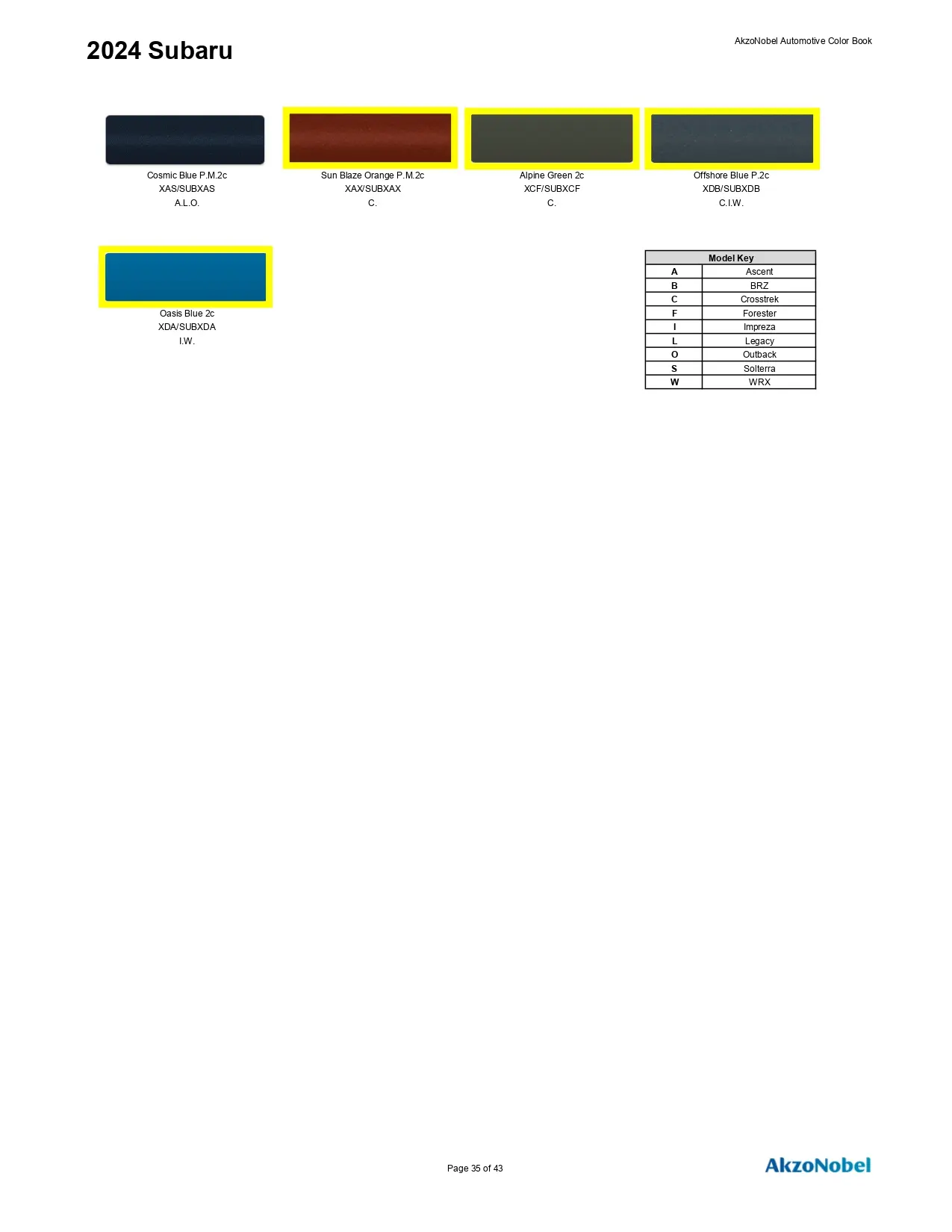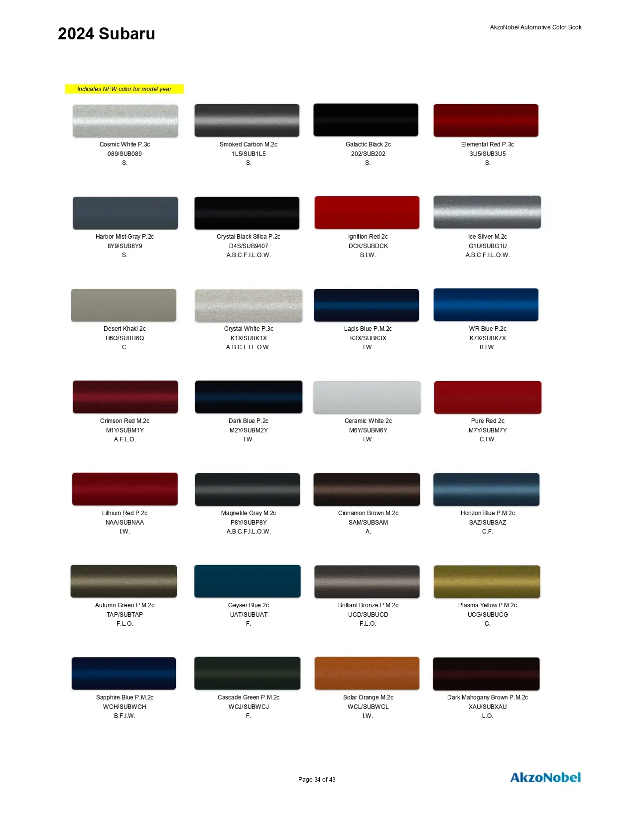 2024 Subaru Paint Codes & Color Chart Page 2