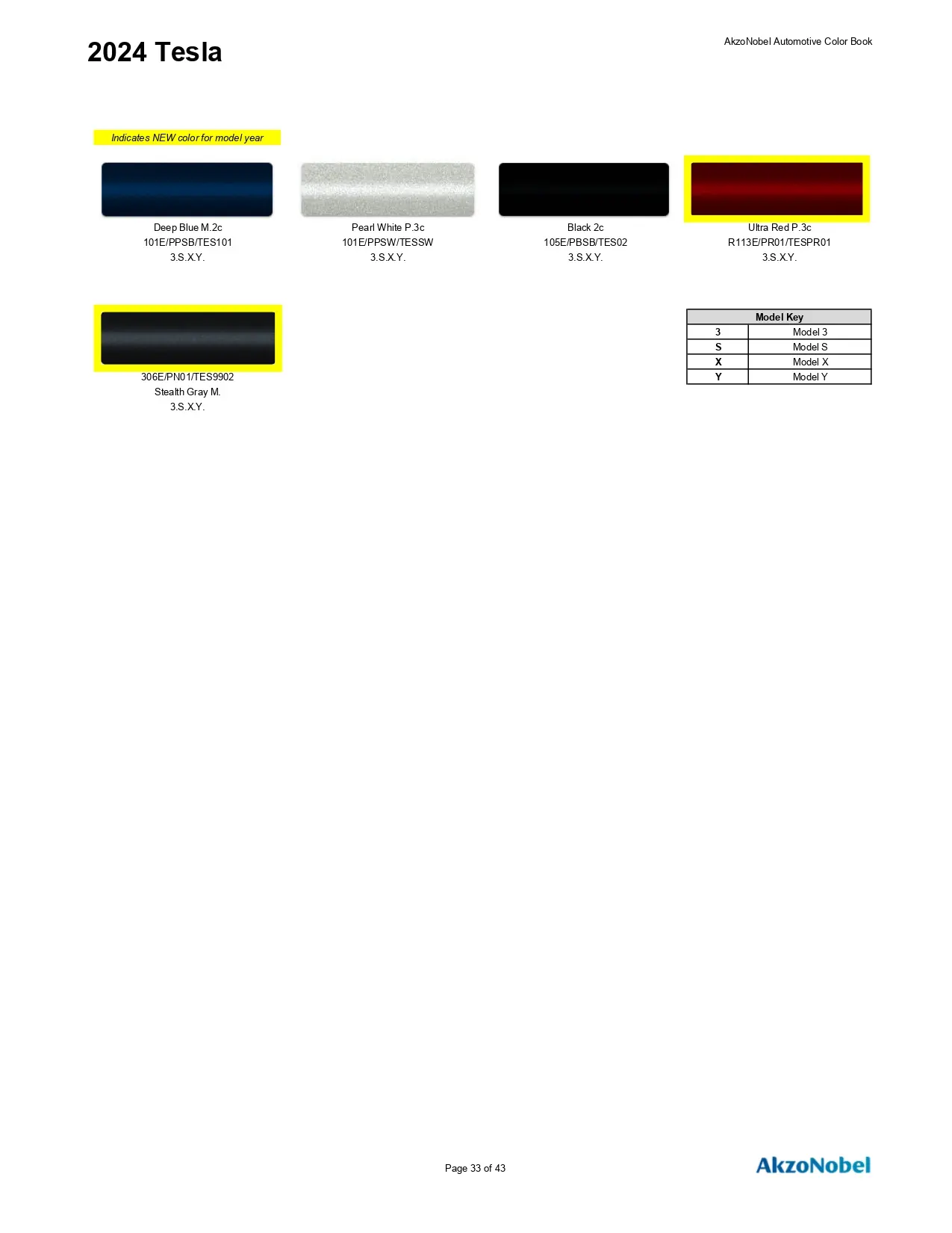 2024 Tesla Paint Codes & Color Chart