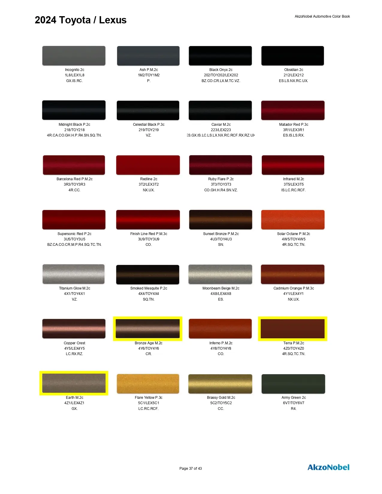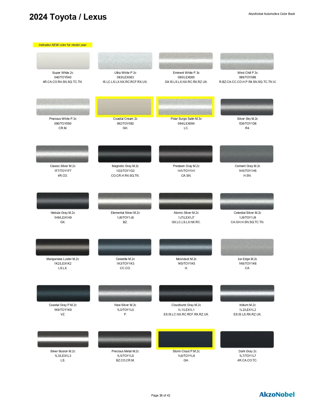2024 Toyota & Lexus Paint Codes & Color Chart Page 4