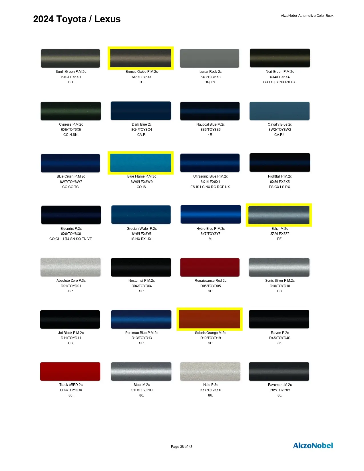 2024 Toyota & Lexus Paint Codes & Color Chart Page 3