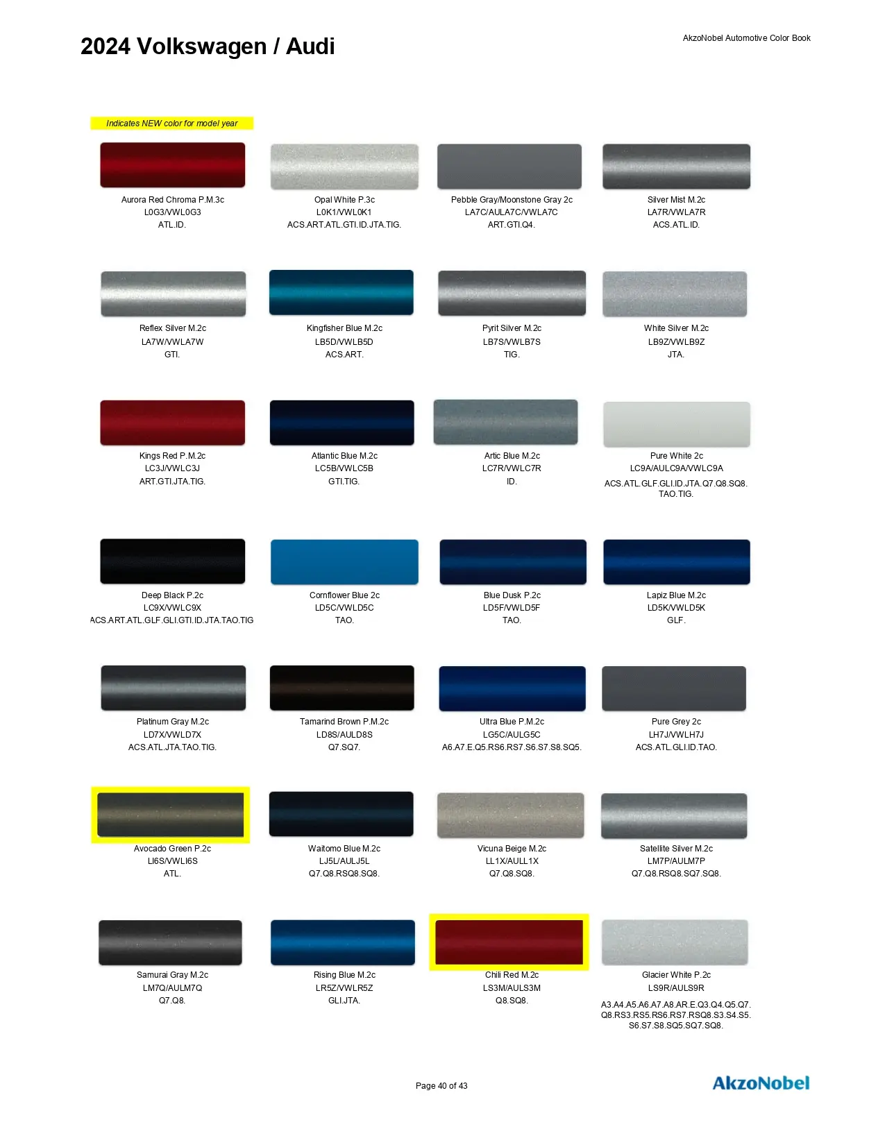 2024 Volkswagen & Audi Paint Codes & Color Chart Page 3