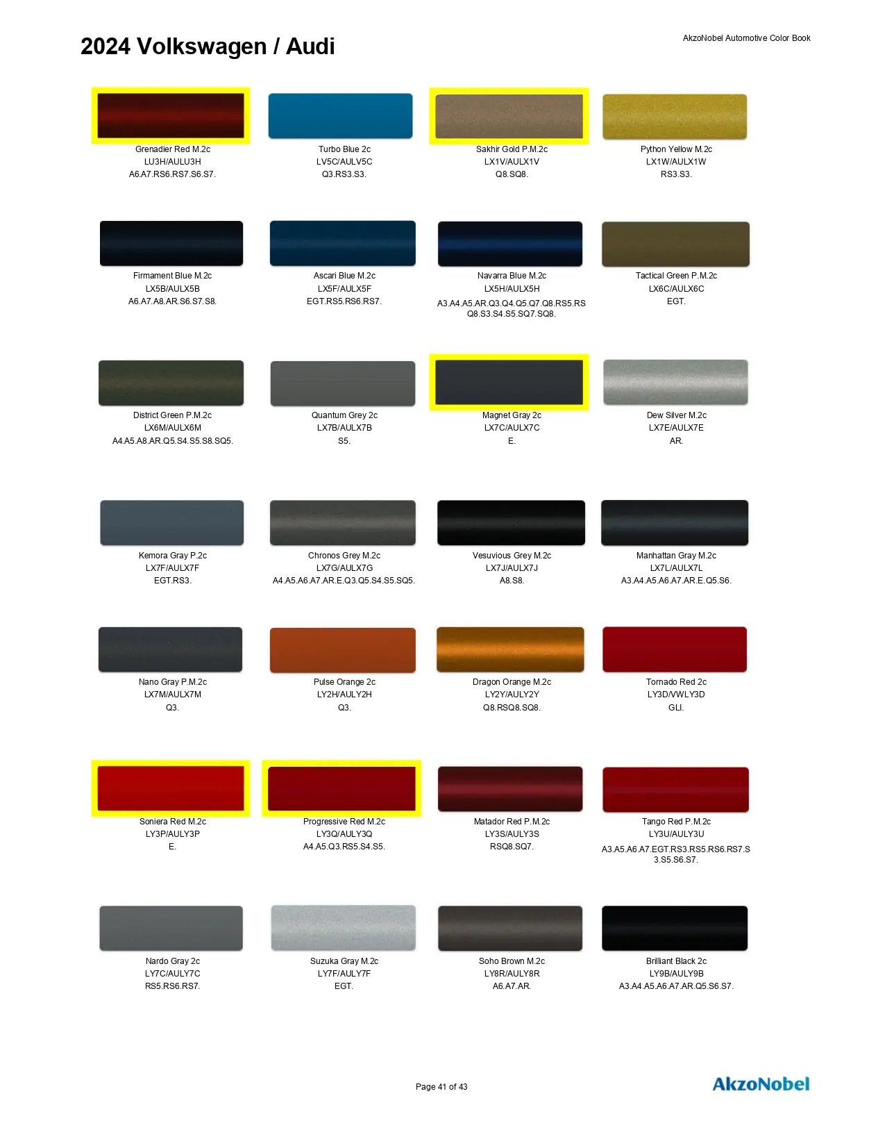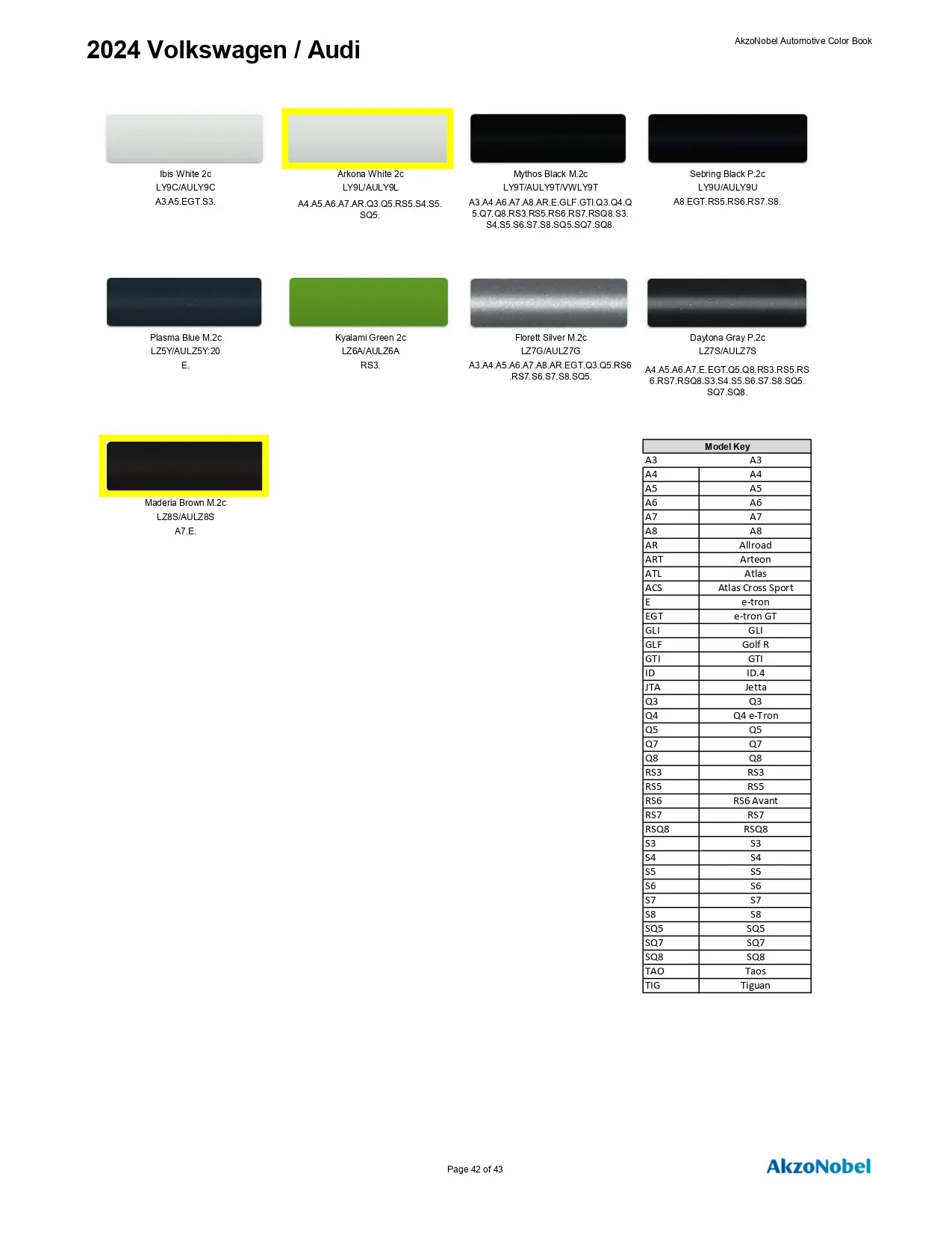2024 Volkswagen & Audi Paint Codes & Color Chart Page 1