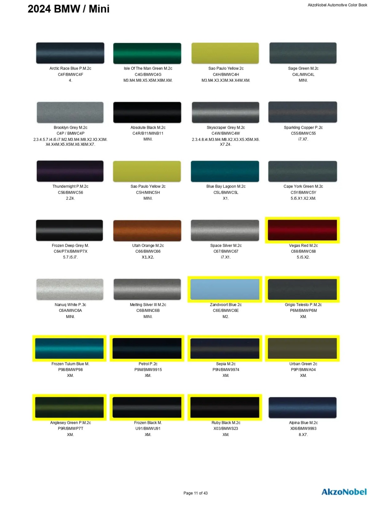 2024 BMW Paint Codes & Color Chart Page 3/3